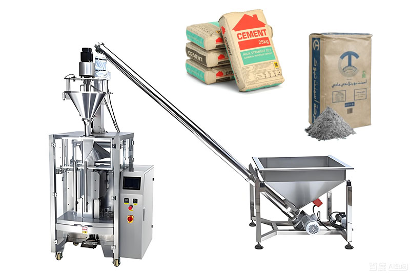 The Cement Powder Packaging Machine VFFS can be used in automated production lines in building material plants, cement plants, and cement product processing plants. It enables large-scale continuous packaging of bagged cement powder, while meeting the stacking and moisture-proof requirements of warehousing and logistics. The VFFS can package conventional cement powders such as ordinary Portland cement, slag Portland cement, composite Portland cement, and pozzolanic Portland cement. It is also suitable for cement powders with high permeability, high-early strength cement, and high-grade special cement that are prone to dust generation and have significant differences in flowability. The VFFS is used in conjunction with a front-end cement powder silo, a screw conveyor for uniform feeding, and a vibrating screen for sieving. At the back end, it connects to a weight detection machine and an automatic palletizer to control packaging accuracy. Some models also require a pulse dust collector to solve the problem of cement powder dust generation, forming a complete packaging production line from raw material output to finished product stacking, meeting the moisture-proof, leak-proof, and efficient packaging requirements of fine cement powder.