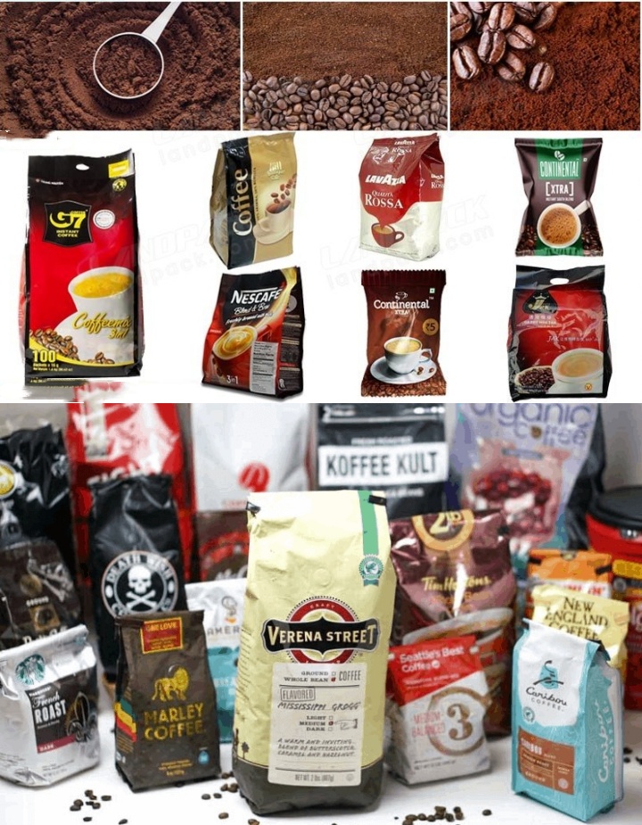 Retail coffee powder packaging: bagged/canned coffee powder sold in supermarkets and e-commerce channels.