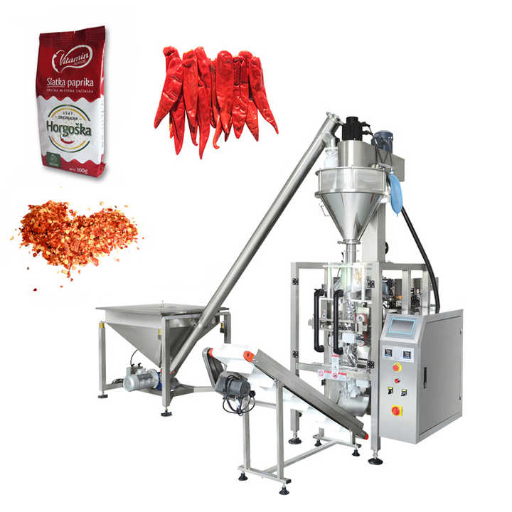Here are various automatic film vertical dry chili packing machine for sale, 0-80 automatic pouch chilli powder packing equipment, 0-1kg automatic chilli powder packing equipment, 1-3kg automatic chilli powder packing equipment, 1-5kg semi-automatic chilli powder packing equipment, 5-50kg semi-automatic chilli powder packing equipment, etc. Semi-automatic packaging machines need to put bags on the machine by hand, while automatic ones can automatically complete the whole process of bag forming, weighing, filling, sealing, cutting and counting.